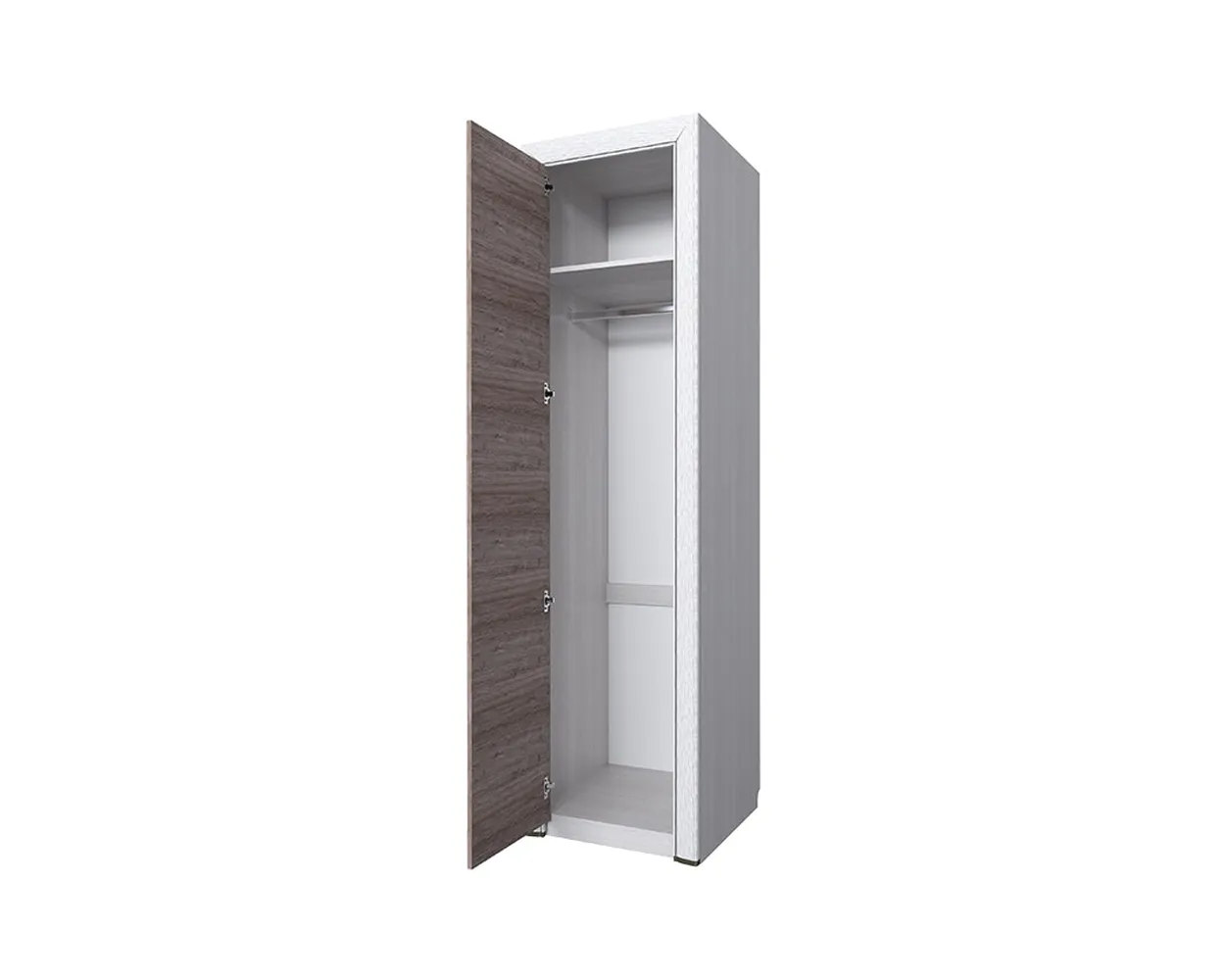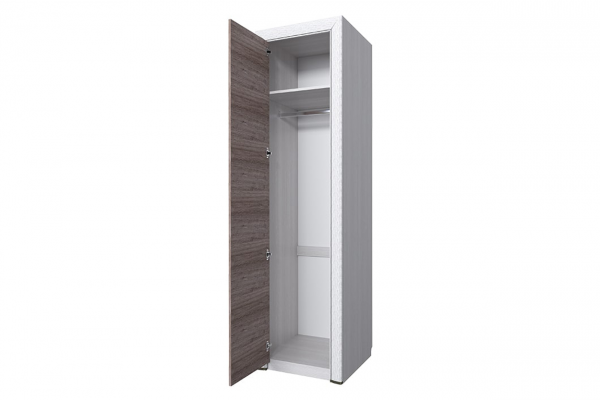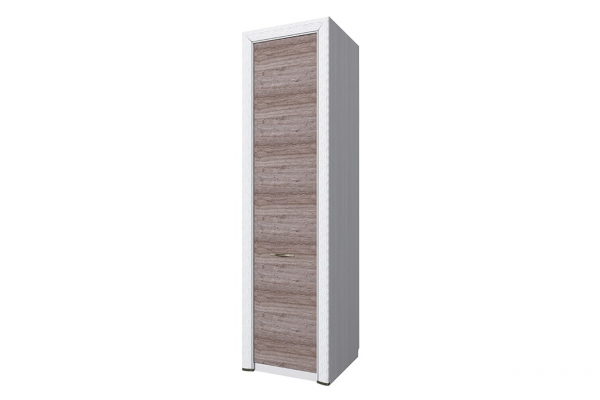 Изделие изготовлено из прочного ЛДСП. Его фасад украшен лаконичной рамой из МДФ с патиной. Удобства в использовании добавляют изящная металлическая ручка и качественная фурнитура. Внутри шкаф укомплектован стационарной полкой и продольной штангой для размещения одежды на вешалках.