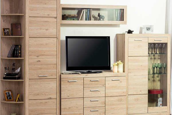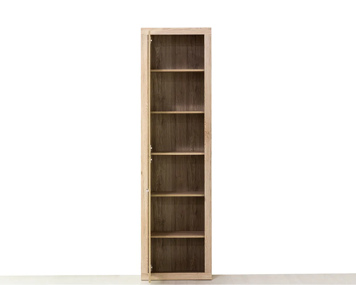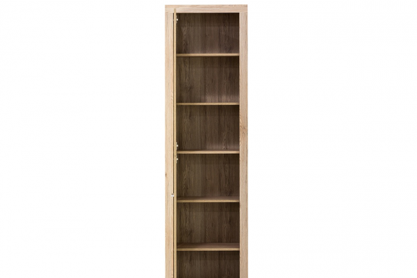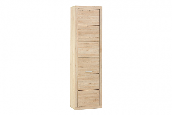 Шкаф Оскар изготовлен из качественного ЛДСП с использованием надежной фурнитуры. Фасады изделия украшены стильными полосами. Удобства в использовании добавляет лаконичная ручка. Шкаф укомплектован пятью полками, четыре из них являются съемными.