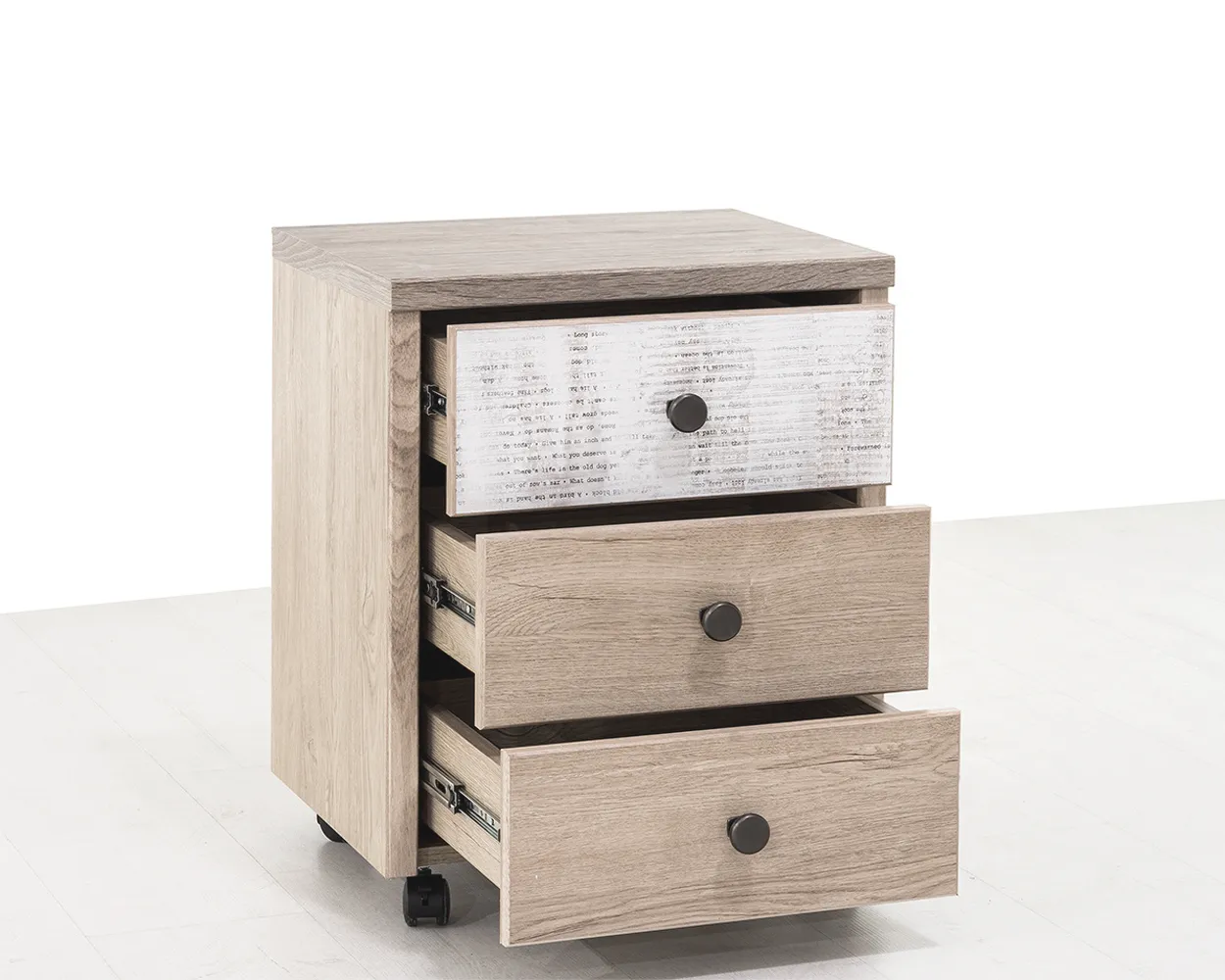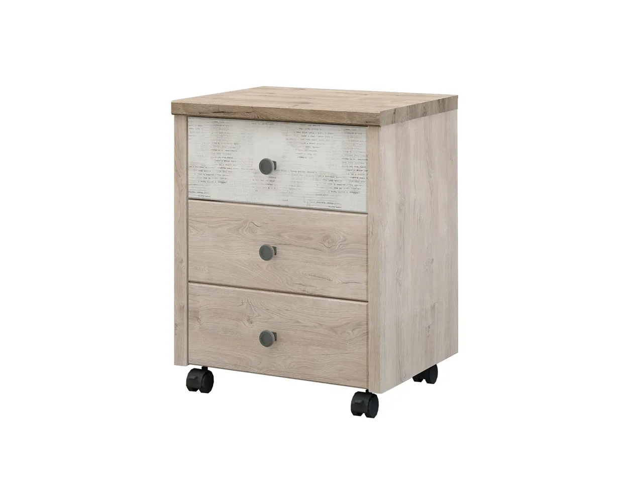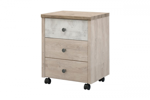 Функциональный и мобильный комод прекрасно справится с ролью прикроватной тумбы, в детской его можно использовать как мини-комод, а в кабинете - в качестве приставного элемента письменного стола. Комод состоит из трех выдвижных ящиков на роликовых направляющих.