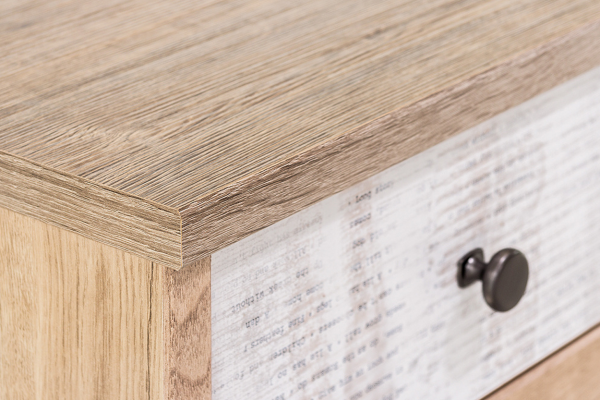 Коллекция мебели Дизель выполнена в совремменном стиле из прочного ЛДСП. Дуб Мадура с его текстурой натурального дерева делает помещение теплее. Столешница имеет цвет Дуб Веллингтон, а модное оформление верхнего ящика в цвете Энигма придает мебели оригинальность и особый шарм. Удобства в использовании добавляют качественная фурнитура и круглые металлические ручки.