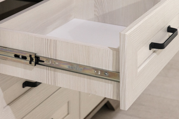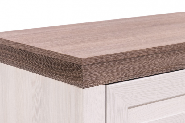 Вместительная и функциональная тумба станет прекрасным дополнением спальни, гостиной либо кабинета. Изделие, входящее в коллекцию Марсель, выполнено в стиле современной классики. Сочетание Снежного Ясеня с темным оттенком Дуб Сонома добавляет комнате свет и эстетическую привлекательность.