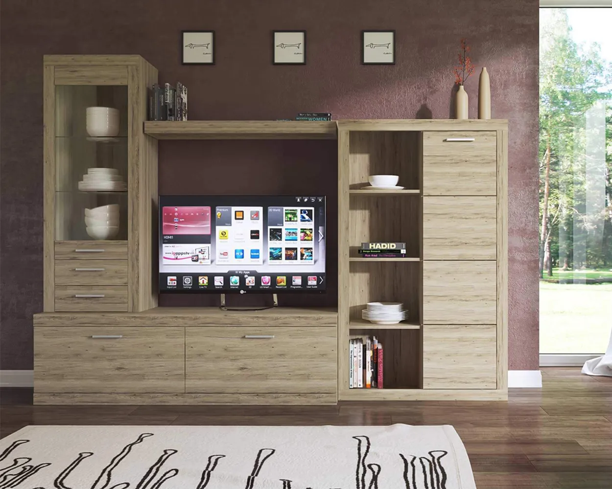 Эргономичный и компактный шкаф-витрина, станет яркой деталью в вашей гостиной, детской или кабинета. Теплый тон и оригинальная текстура дерева Дуб Санремо весьма эффектно смотрятся, добавляя комнате света и уюта.